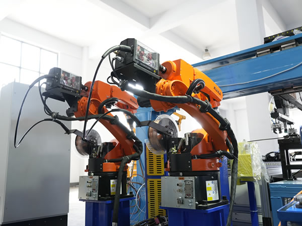 關鍵工藝技術的優化:沖環工位采用鋼絲在線制環成型技術,本技術由公司創新研發,突破了傳統預制鋼環人工套環的工藝瓶頸,減少了工序環節,降低了錨桿制造成本。焊接環節配備雙工位六軸機器人焊接系統,搭載自動尋位跟蹤技術與脈沖MAG焊接工藝,可調式定位系統,兼容更多規格產品,焊接效率高、焊縫表面成型均勻光滑,無飛濺、氣孔等缺陷,焊接質量達到ISO5817-B級標