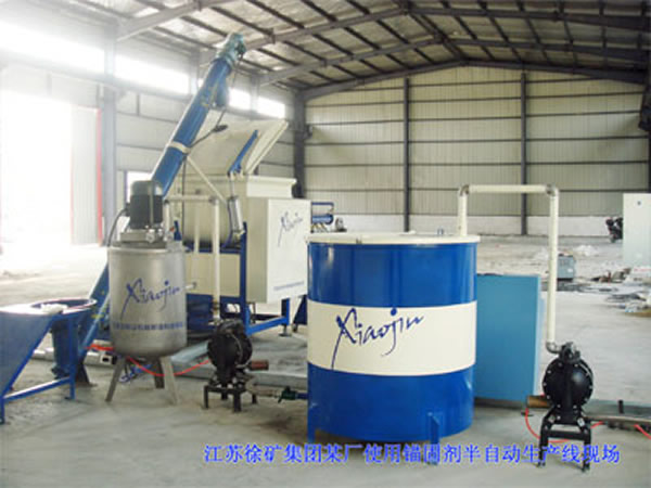 2.固化劑自動上粉、攪拌,輸送至雙工位定量灌裝設備。